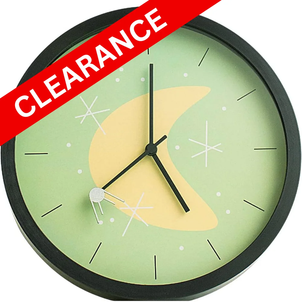 The Space Age Retro Sputnik Wall Clock captures the excitement of the 1950s space race in a sleek, silent design. Featuring a tiny Sputnik 1 orbiting on the sweeping second hand, this vintage-inspired clock celebrates the launch that changed history. Its seafoam green finish and mid-century atomic style make it a perfect accent for retro kitchens, campers, or space-themed rooms. We adore how it blends science, nostalgia, and design—quietly ticking off time without the tick-tock. Both decorative and conversation-worthy, it’s a timeless reminder of humanity’s first leap into the stars.